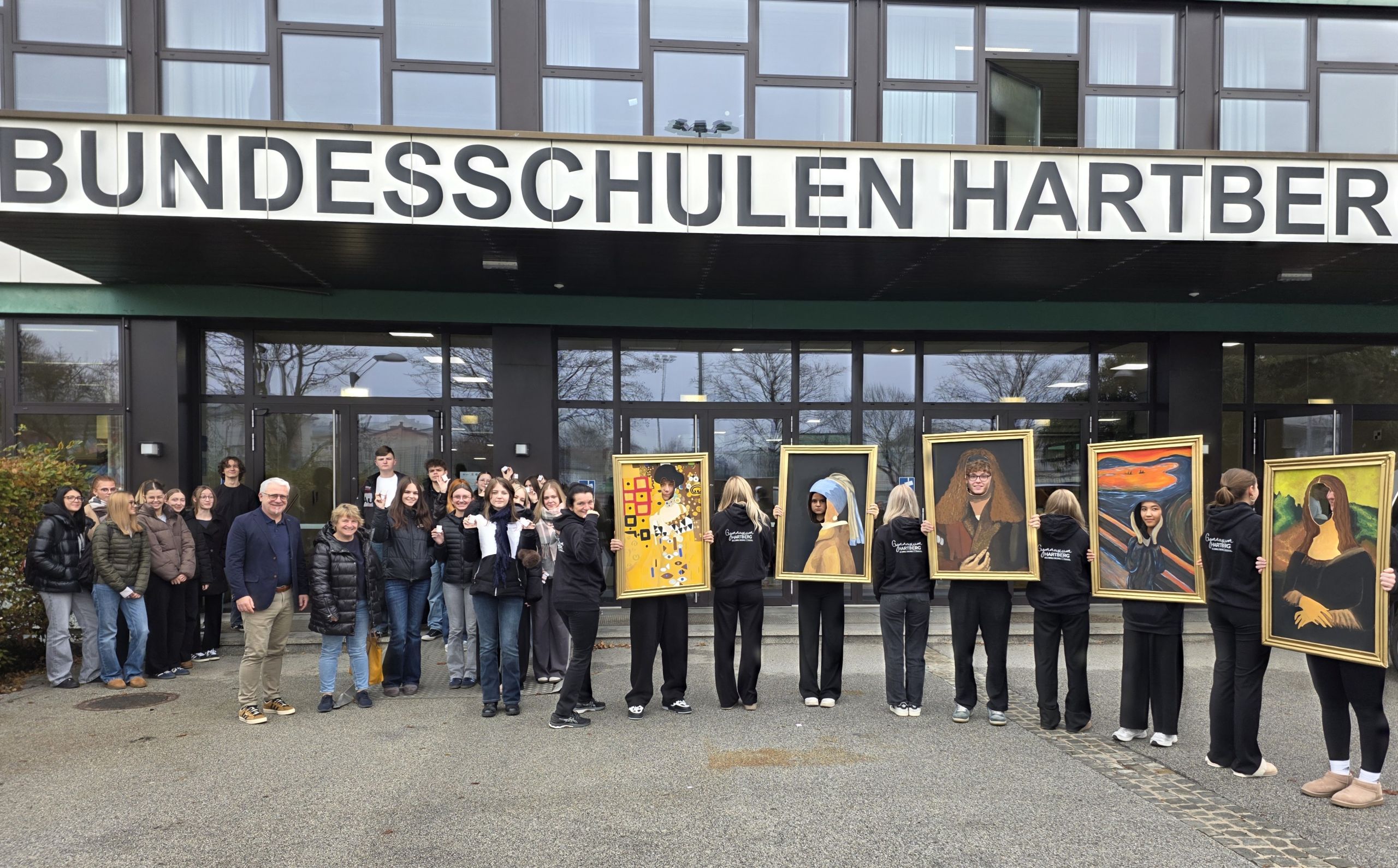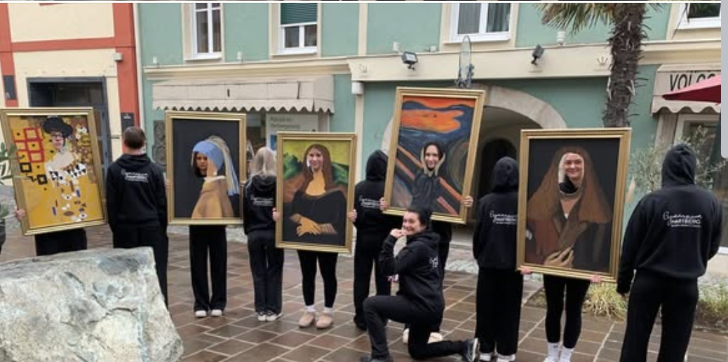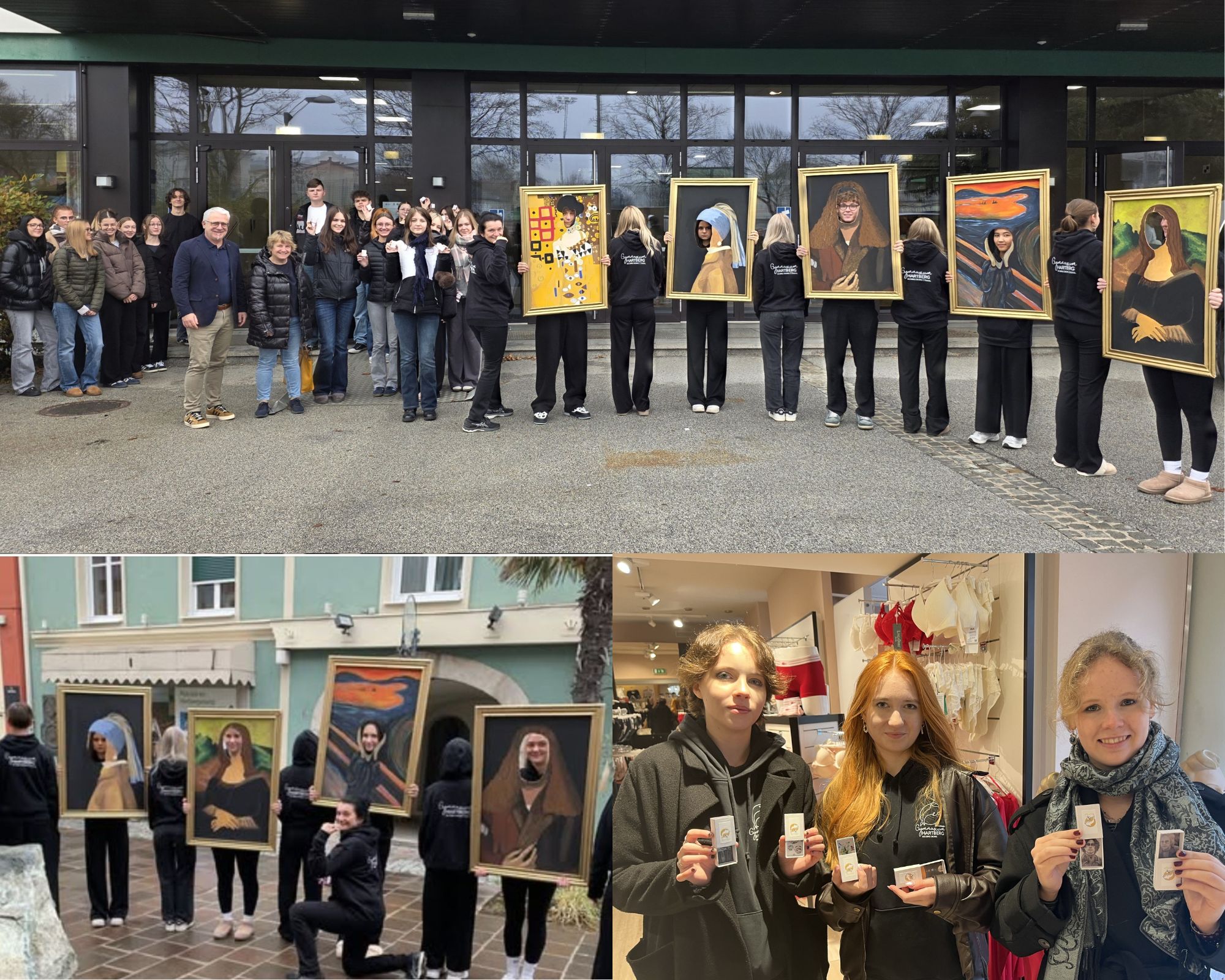Die Klassen 8CB und 5CB zogen mit ikonischen Bildnissen durch die Stadt – darunter Edvard Munchs „Der Schrei“ oder Leonardo da Vincis „Mona Lisa“ und faszinierten als wandelnde Galerie.